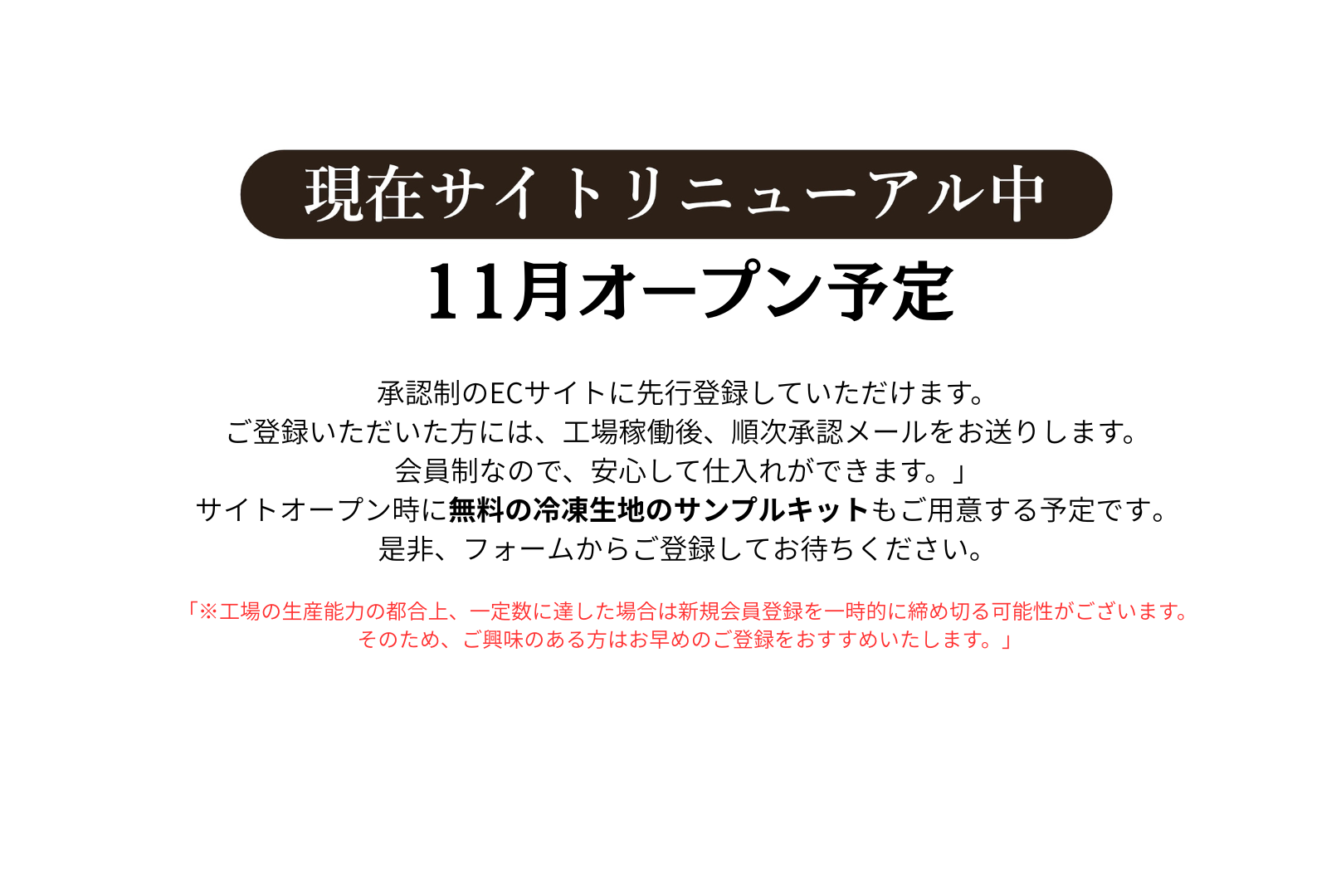 OKASHINOは承認制のECサイトです。会員申請をいただき、弊社にて承認が完了したお取引様のみご利用いただけます。