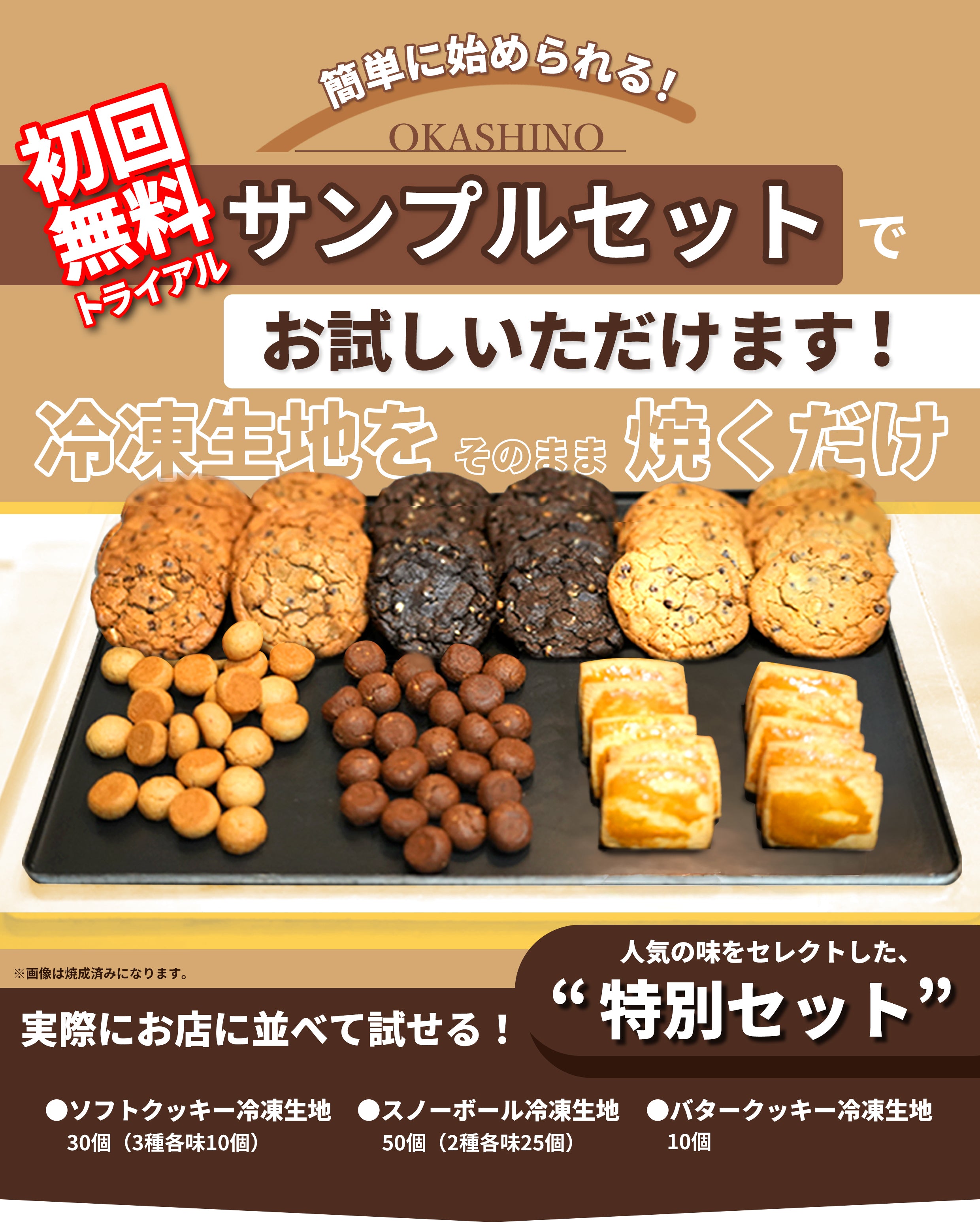 アレンジしやすいプレーン生地や、スノーボール生地など、ソフトクッキー以外にも様々な種類を展開しています。